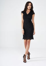 Elegant, classic, and effortlessly sophisticated, this LBD is one of the most-loved – by us and by you, our lovely Lady Flare audience. Cap sleeves offer unrestricted comfort and versatility to take you seamlessly from the boardroom to bar. The intricate floral lace dress gently tapers at the waist and thighs to smoothly follow the line of your body whilst the V-neck with its continued lace detailing on the edge subtly distinguishes the dress from the others on the market.