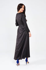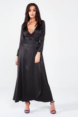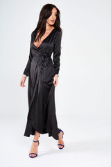 Black Satin Wrap Around Maxi Dress