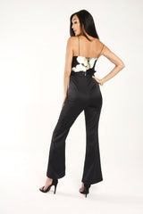Floral Print and Black wide Leg Jumpsuit With Frill Waist
