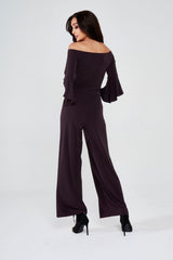 We think we have ticked every one of your boxes with our off-the-shoulder burgundy jumpsuit.