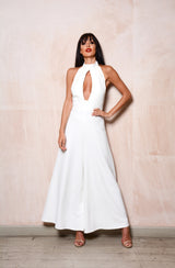 Elegant and beautiful in equal measure, we bring this stylish and stunning Ivory split halter jumpsuit to our latest collect. With its wide leg and flowing design this will be exquisite for any occasion.