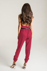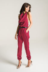 Instant glamour greets all who wear our halter jumpsuit. The low back brings the perfect clothing cocktail of class and fun whilst keeping you cool and comfortable from dusk ‘til dawn. Its design sees our signature ruching at the ankles together with the gentle natural folds of the fabric in the top section. The elasticated waistline gently nips in at our smallest part which can be emphasised by a slim black belt or something with a bit more drama if you’re looking to make a statement. Each jumpsuit is lined with satin for extra luxury.